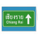 Sinal tailandês bilíngüe da estrada engraçada de Chiang Rai, de Tailândia adiante escrito em roteiros da língua tailandesa e inglesa.