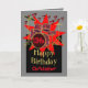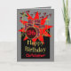 Um tambor colorido com notas musicais em uma explosão vermelha brilhante. Batidas de tambor de celebração de 13. Antecedentes geométricos de azulejo preto e branco modernos. Tenham uma explosão! Aproveite o seu dia! Feliz décimo terceiro aniversário. O nome na frente e todo o texto do dentro podem ser personalizados usando o modelo fornecido. Divirta-se com este cartão de aniversário temático musical para um adolescente especial em sua vida. Design original do estúdio Anura Design.