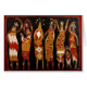 Seis mulheres estão movendo-se, estão balançando-se, e estão dançando-se. Há uma criança e uma mulher tem um bebê em seu quadril. As mulheres e as crianças são vestidas na roupa bonita, brilhante e têm ornamento em seu cabelo e em muitos formulários da jóia em seus corpos. As figuras estão contra um fundo preto com uma beira vermelho escuro como parte da tapeçaria.