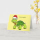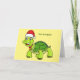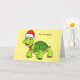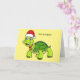 Cartão Tartaruga fofa e feliz usando chapéu de Papai Noel