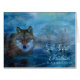 A composição digital do lobo bonito com árvores e azul do inverno roda com neve de queda para representar o inverno. Aperfeiçoe o cartão de Natal GRANDE para o amante dos animais selvagens. Estes trabalhos de arte foram criados e doados ao tri cuidado dos animais selvagens do condado por Doreen Erhardt©2013. Os obrigados vão a Martin Mecnarowski, Larisa Koshkina e as criações da casa da sombra para elementos de contribuição a este feriado projetam.