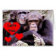 Dois chimpanzés com corações vermelhos que diz "Amo-te no centro".