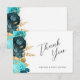 Cartão Teal Aqua Gold Floral Wedding Flat Thank You