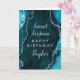 Este cartão de aniversário elegante e glamouroso pode ser personalizado com um nome ou título como filha, neta, sobrinha, amiga, etc. O design apresenta um fundo de mármore azul-lacrimejante com sotaques falso prateados. O texto combina o script manuscrito e as fontes sans serif modernas para um aspecto elegante e sofisticado.