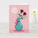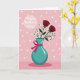 This card shows a stylized bouquet arranged in a sleek teal vase that sits in the lower half of the design, catching a soft highlight like a gentle glance shared between friends ❤️. A bright fuchsia ribbon wraps the vase neck and forms a neat bow, adding a gift-like touch that feels affectionate without being overdone. Two large deep burgundy blossoms rise above, their rounded petals leaning slightly toward each other as if in a quiet, caring moment. Dark green leaves and thin sprigs with tiny white flowers fill out the arrangement, giving the bouquet a light, airy contrast. The background is pastel pink with softly faded white circles scattered around, creating a calm, dreamy setting. In the upper left, a white circle holds the words “Happy Mother’s Day” in dark lettering that stands out clearly, with the text centered inside the badge 🌼. A deeper pink shadow sits just beneath the vase, grounding it against the pink backdrop while the diffused white circles float behind the flowers.