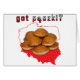 Paczki ou Ponczki, uma deliciosa rosquinha cheia polonesa, é uma sobremesa tradicional polonesa. Aposto que você não pode comer apenas um. O roupa de orgulho polonês e os itens de presentes que apresentam uma foto de um monte de paczki sobre um mapa de Polônia vermelho e branco com as palavras que receberam paczki? nas cores da bandeira Polônia.