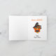 Este cartão de saudação de Dia das Bruxas apresenta uma coruja laranja brilhante vestida com um chapéu de bruxa e tocada numa vassoura em frente a uma lua crescente amarela e um morcego preto. De um lado está um pequeno fantasma branco, e uma aranha pende de seu chapéu. O texto branco diz atualmente "Feliz Dia das Bruxas" e o nome do seu filho. A imagem e o texto são colocados sobre um fundo azul escuro do céu. A dentro do cartão também tem uma imagem da mesma coruja, com texto cor de laranja e preto que diz atualmente "Tenham um galho!" e a vossa própria assinatura. Todo o texto pode ser facilmente alterado por você para qualquer coisa que você gostaria. Maravilhoso para uma criança, especialmente de um avô ou pai. *Obrigados para a Clipart Real Deal para o cliente usado para criar este design.