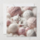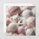 Pequeno gatinho branco doce dormindo em bolas de fio rosa e branco. Desejando-lhe um dia perfeito. Cartão de amizade de giz.