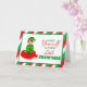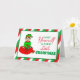 Lindo elfo de Natal festivo desenhado à mão sentado na sacola de brinquedos do Papai Noel. Cartão de Natal festivo vermelho, verde e branco que pode ser personalizado por dentro. Basta adicionar seu nome na seção personalizada.