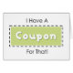 Design de cupom verde e preto com o engraçado ditado que tenho um cupom para isso! Um presente de excelente para aqueles cortadores de cupons em sua vida que gostam de economizar dinheiro cortando cupons para comprar compras.