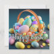Este cartão de Páscoa único apresenta uma cesta colorida transbordando de ovos e doces. Por favor, sinta-se à vontade para ajustar o texto para tornar este cartão pessoal e único.