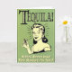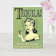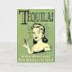 Vintage poster with young lady holding a drink class. Above "Tequila" and below "Helping women lower their standards for years". Background is green
