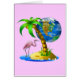 Flamingo com a palmeira na praia com a terra que pendura no céu. Você pode escolher seu próprio clik da cor do fundo apenas personaliza sobre
