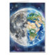 Cartão Terra & Lua Aquarela Galáxia Design Celestial