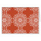 Esta mandala branca senta-se num fundo laranja escuro. As cores são criativas e quentes. Parte da coleção Losonieth Mandala.