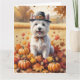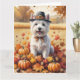 Uma pintura em estilo aquarela de um cão alegre sentado em meio a uma pilha de folhas vibrantes de outono, cercado por pequenas abóboras e bolotas espalhadas. O cão usa um pequeno chapéu de peregrino e irradia alegria, capturando o espírito do Dia de Ação de Graças. Ao fundo, campos de colheita suaves e árvores douradas criam uma atmosfera tranquila no campo. Texturas suaves e tons outonais quentes e suaves dão à cena um clima aconchegante e nostálgico, perfeito para celebrar a beleza da estação.