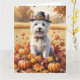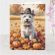 Uma pintura em estilo aquarela de um cão alegre sentado em meio a uma pilha de folhas vibrantes de outono, cercado por pequenas abóboras e bolotas espalhadas. O cão usa um pequeno chapéu de peregrino e irradia alegria, capturando o espírito do Dia de Ação de Graças. Ao fundo, campos de colheita suaves e árvores douradas criam uma atmosfera tranquila no campo. Texturas suaves e tons outonais quentes e suaves dão à cena um clima aconchegante e nostálgico, perfeito para celebrar a beleza da estação.