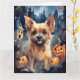 Cartão Terror de Halloween Australian Terrier Com Abóbora