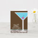 Cartões de aniversário à moda que caracterizam um martini azul com uma cereja para dentro em um fundo do teste padrão da zebra.