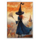 Uma bruxa olha sobre a cidade a partir de uma aquarela gerada por IA no telhado