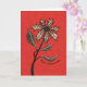 Cartão de saudação personalizado gótico com desenho a tinta de uma flor escura estranha com folhas pretas agudas com veias brancas e pétalas brancas sobre fundo vermelho vibrante no estilo de retrô-safra.