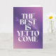 A high-impact, inspiring card featuring the optimistic message: "THE BEST IS YET TO COME." The powerful white, bold lettering stands out against a stunning purple and pink cosmic gradient background with visible galaxy and stardust details. This design is perfect for sending a hopeful and motivating message to someone beginning a new chapter, graduating, or simply needing a reminder to focus on the future. Use it as a graduation card, a message of hope and encouragement, or a stylish piece of inspirational stationery for anyone who loves space or bold, modern aesthetics.