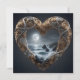A heart shape with intricate patterns frames a serene ocean view under a full moon. The grayscale background adds a dreamlike quality to the scene.