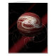 Um objeto esférico - que parece quase um planeta ou uma esfera energética - é colocado contra um fundo escuro, ao estilo cósmico. A esfera é predominantemente vermelha profunda, com espirais dinâmicas de luz branca brilhante e dourada pálida cercando sua superfície em padrões complexos e caóticos. Essas trilhas de luz dão a ilusão do movimento, como se a energia estivesse fluindo e girando constantemente dentro e em volta da esfera. Atrás da esfera, bandas diagonais de luz vermelha cortam através da escuridão, acrescentando profundidade e drama. Ao redor da esfera, há poços de luz esmaecidos e saborosos - quase como filamentos de eletricidade ou cósmicos - flutuando livremente, sugerindo que a esfera está irradiando energia ou suspensa em um vazio surreal, parecido com o espaço.