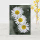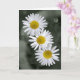 This pretty greeting card features an original photograph of three daisies with daisy buds unfolding in the teal toned background. The card would suit almost every occasion - sympathy, congratulations, or just to say hi.