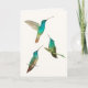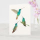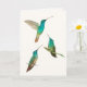 Blank greeting card featuring a hand-painted Versicolored Emerald Hummingbird and two Rufous-tailed Hummingbirds.