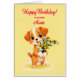 Um cartão de aniversário bonito para uma tia. Um filhote fofinho segurando um monte de flores e dizendo "Parabéns". Comemore um aniversário com esta carta irresistível mostrando um filhote doce segurando um monte de flores margaridas, perfeito para derreter corações.