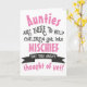 Um cartão engraçado para uma Tia (ou o nome personalizado dela). Se a Tia dos seus filhos está sempre colocando as crianças em travessuras, então este é o design perfeito para ela. Envie-o dos sobrinhos e faça-a sorrir!