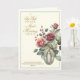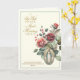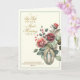 O cartão de cura apresenta uma bela e tradicional imagem católica personalizada desenhada de Nossa Senhora de Graça sobreposta em um buquê de rosa. Um verso de script está na frente da placa e do dentro.