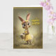 Celebre a alegria da primavera com este adorável cartão de Páscoa com um doce coelho vestido com um lindo vestido amarelo e coroa de flores, segurando uma cesta cheia de ovos de Páscoa coloridos. Rodeado por uma luz dourada suave e borboletas a voar, este design caprichoso captura a calidez, a felicidade e a renovação da época da Páscoa. Um cartão encantador para enviar votos festivos de Páscoa a amigos, familiares ou qualquer pessoa que adore arte de coelhos fofos e cenas alegres da primavera.