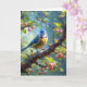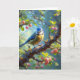 Uma teta azul senta num galho entre folhas e bagas num dia ensolarado