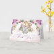 Este adorável cartões de agradecimentos dobrado apresenta ilustração adorável de um grupo de animais da selva, verde tropical exuberante e belíssimas flores de blush e roxo.