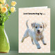 Envie desejos calorosos para uma rápida recuperação com este adorável templo de filhotes, consiga um bom cartão. O cartão fotografa um filhote fofo e animado em um fundo pastel de pêssego com design de pata impressa. A mensagem "Bounching by..." na frente da placa é seguida por "para desejar uma rápida recuperação" dentro. Perfeito para amantes de cachorro e todos que poderiam fazer com encorajamento, desejos e um impulso fofo do amor de filhote.