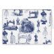 Este produto apresenta meu design de "Vintage Sewing Toile" em azul. Ele retrata várias máquinas de costura, tesouras, uma senhora vitoriana que está costurando as mãos e também manequins de corset e de vestido, assim como um manequim que foi equipado com uma saia-forte.