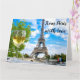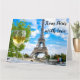 Vidro de vinho branco com vista para a torre Eiffel em Paris, França.
