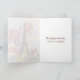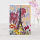 Este lindo design da Torre Eiffel apresenta a arte da Torre Eiffel artisticamente incorporada a um fundo com um cenário de flores de Íris artísticas, a flor nacional da França. Há também várias flores da primavera na frente da Torre Eiffel. Personalize o interior com seu cumprimento personalizado!