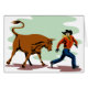 ilustração de um touro que persegue o vaqueiro do rodeio feito no estilo retro