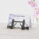 Um cartão de boas-vindas da Tower Bridge, Londres, na maré baixa, com a ponte rodoviária aberta. As palavras "Tower Bridge, London" estão escritas no cartão, mas você pode personalizá-lo com suas próprias palavras, se quiser. Você pode personalizar o cartão com seu próprio dentro de mensagem.