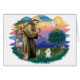 O santo paterno dos animais e uma pessoa amada que atravessa linhas denominacionais, Ruas. Francis é mostrado aqui com um Poodle Branca de Brinquedos. A figura do Santo Francisco foi adaptada da obra-prima do 14 de Giotto e um novo fundo foi criado por Jean Fitzgerald