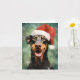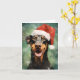 Design de Natal colorida e alegre com um Doberman vestindo um chapéu de Papai Noel.