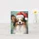 Design de Natal colorida e alegre com um Papillon vestindo um chapéu de Papai Noel.