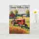 Este cartão nostálgico para o Dia dos Pais apresenta uma imagem retrô de um trator vermelho em um campo. Com 'Feliz Dia dos Pais' no topo, o cartão rústico é ideal para entusiastas de tratores antigos. Cheio de charme campestre, o cartão é em branco por dentro para a sua própria mensagem.