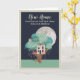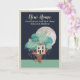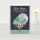 Um novo cartão de saudações em casa, bonito, com uma Tree House com luzes de fada, contra um céu noturno com lua grande de cheio - cartões de Ricaso