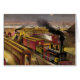 Cena e slogan do trem de noite com uma imagem do arquivo de uma jarda do trem na noite. Os t-shirt, os posters, as canecas, e outros artigos para o trem ventilam, lustre da história, e fã referente à cultura norte-americana.