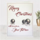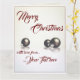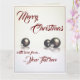 Cartão Três bolas de natal em frente ao fundo da luz