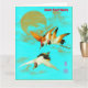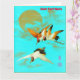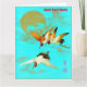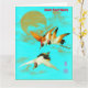 Cartão Três guindastes sarus voando em frente à lua